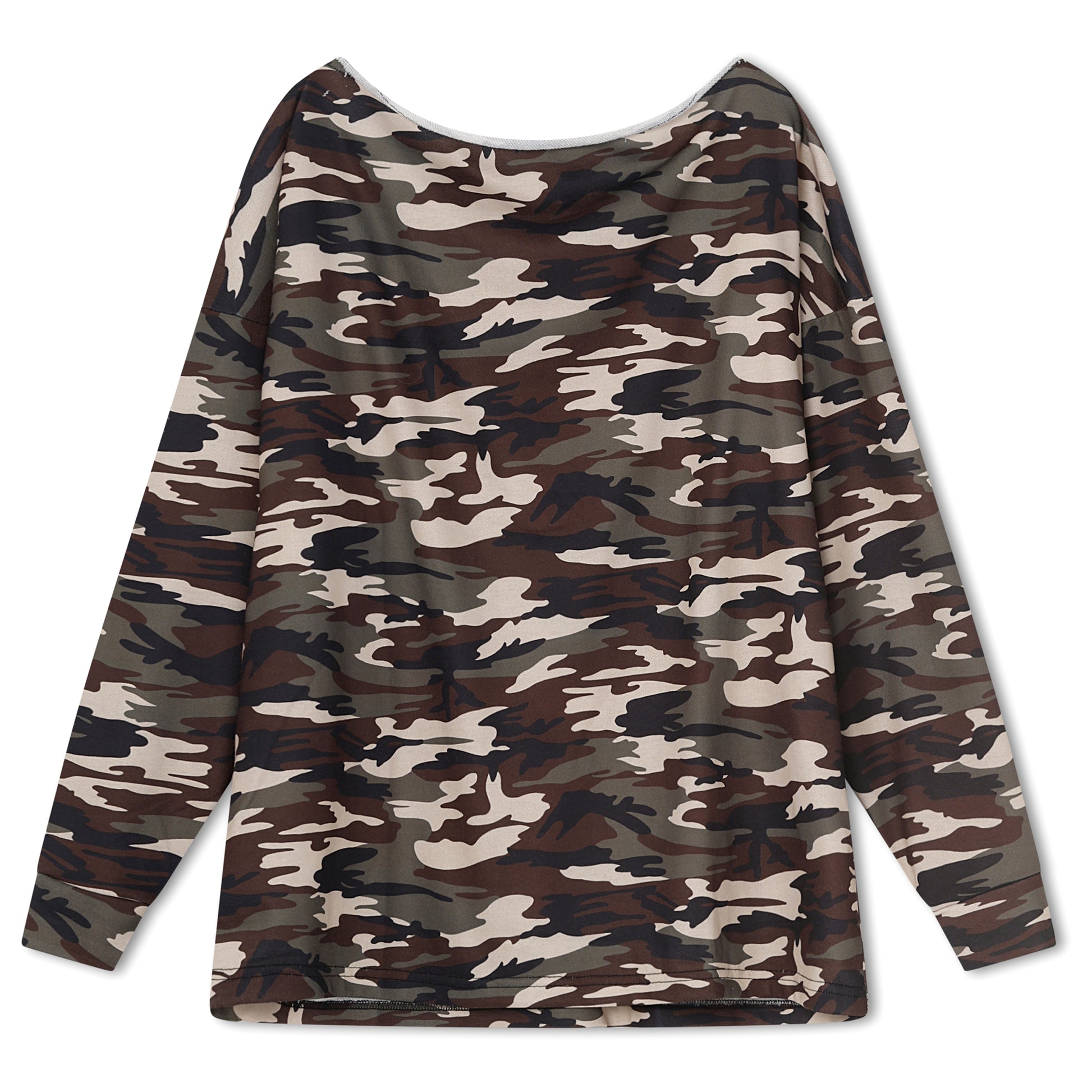 Oversized sweat pant in camouflage printed fabric with contrast waistband