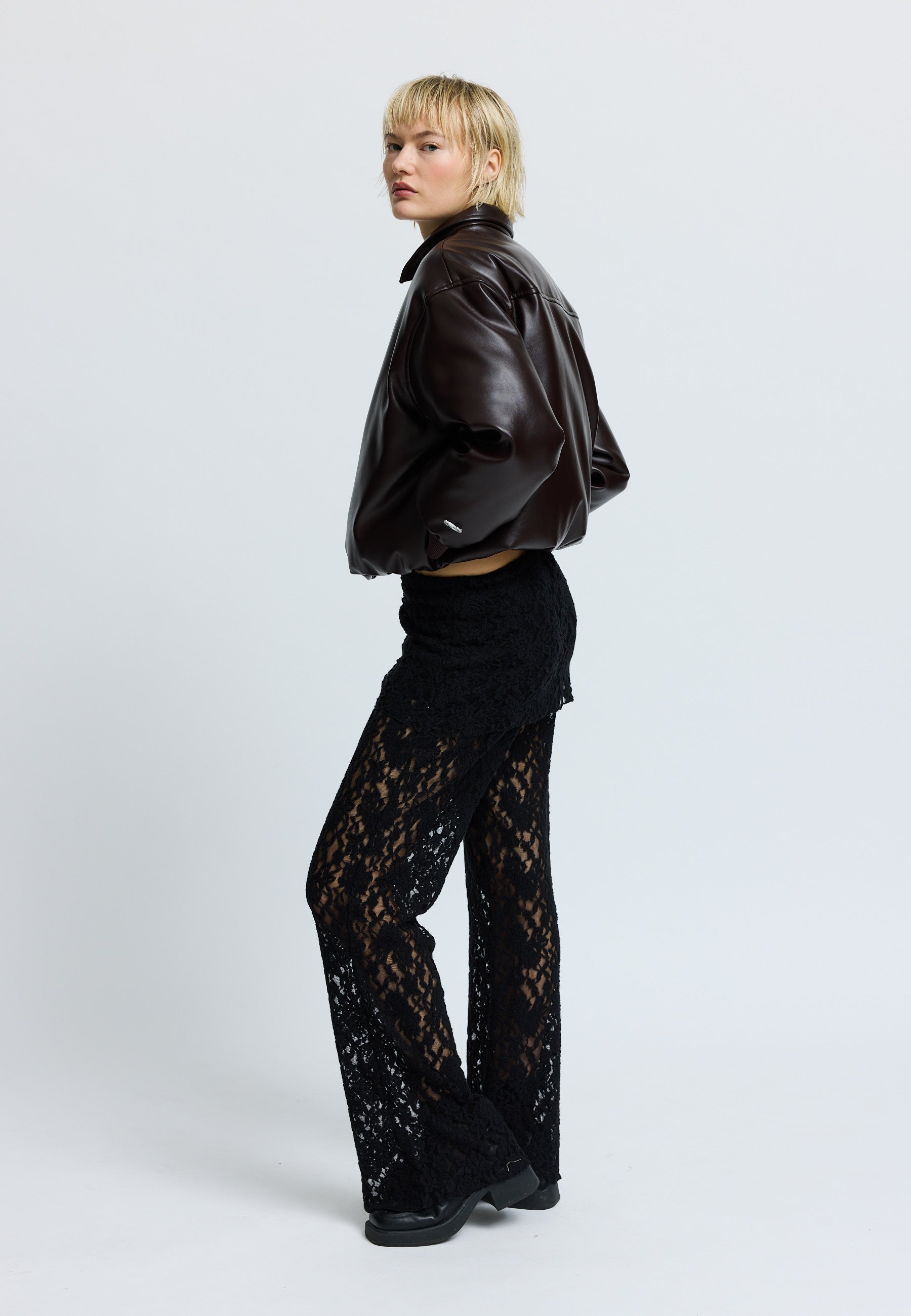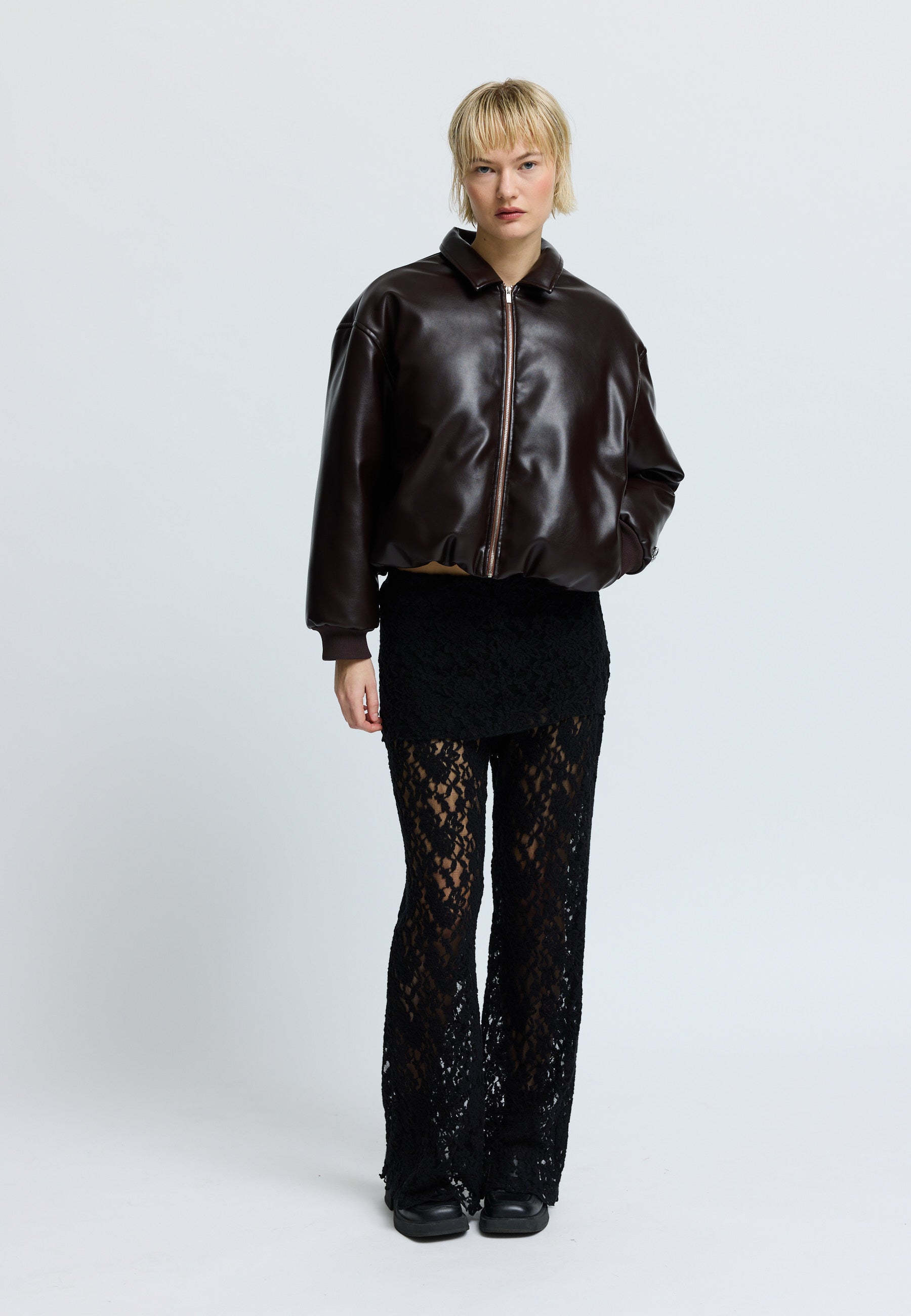 PU puffer jacket with collar, rib cuffs and sideseem pockets.