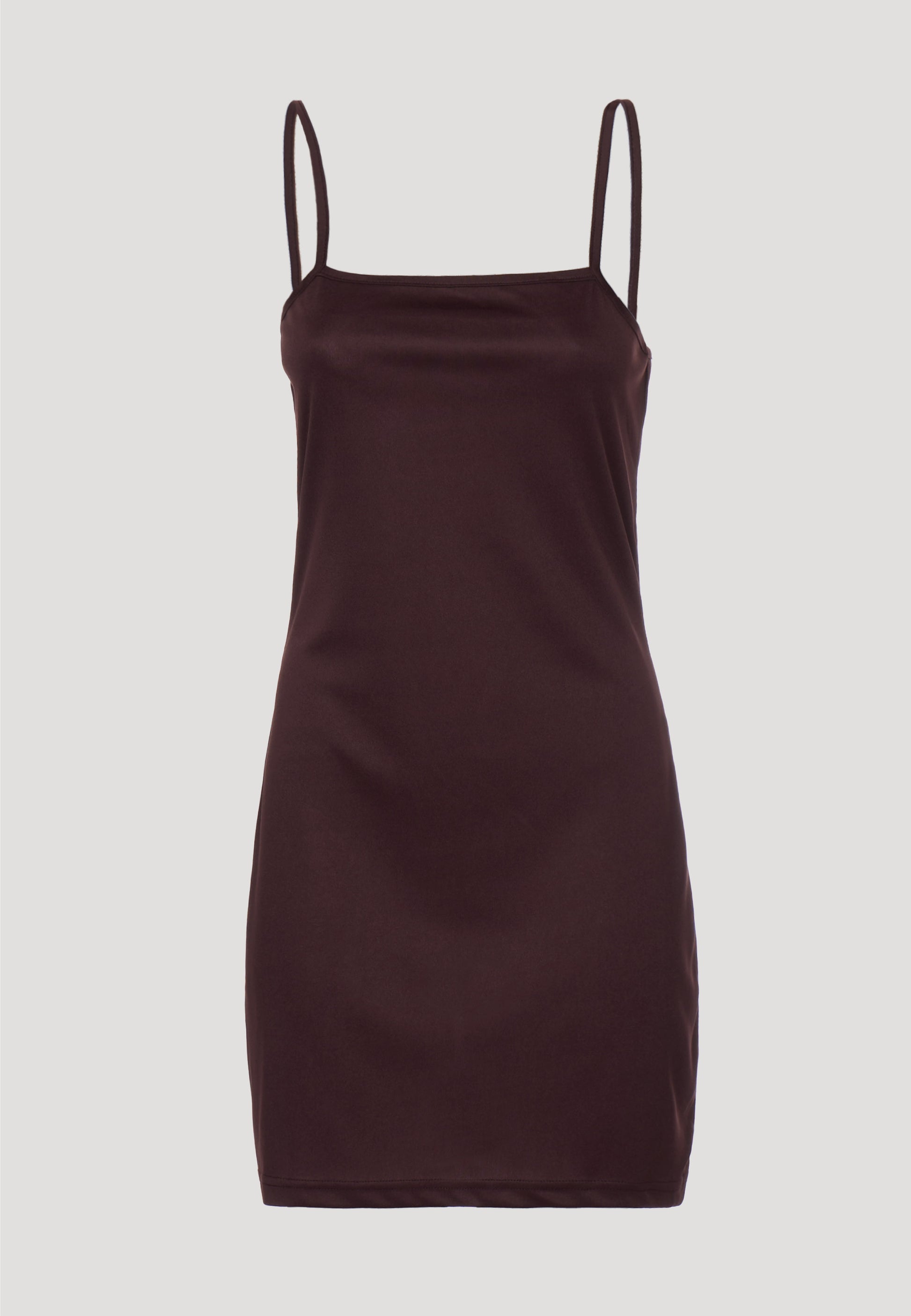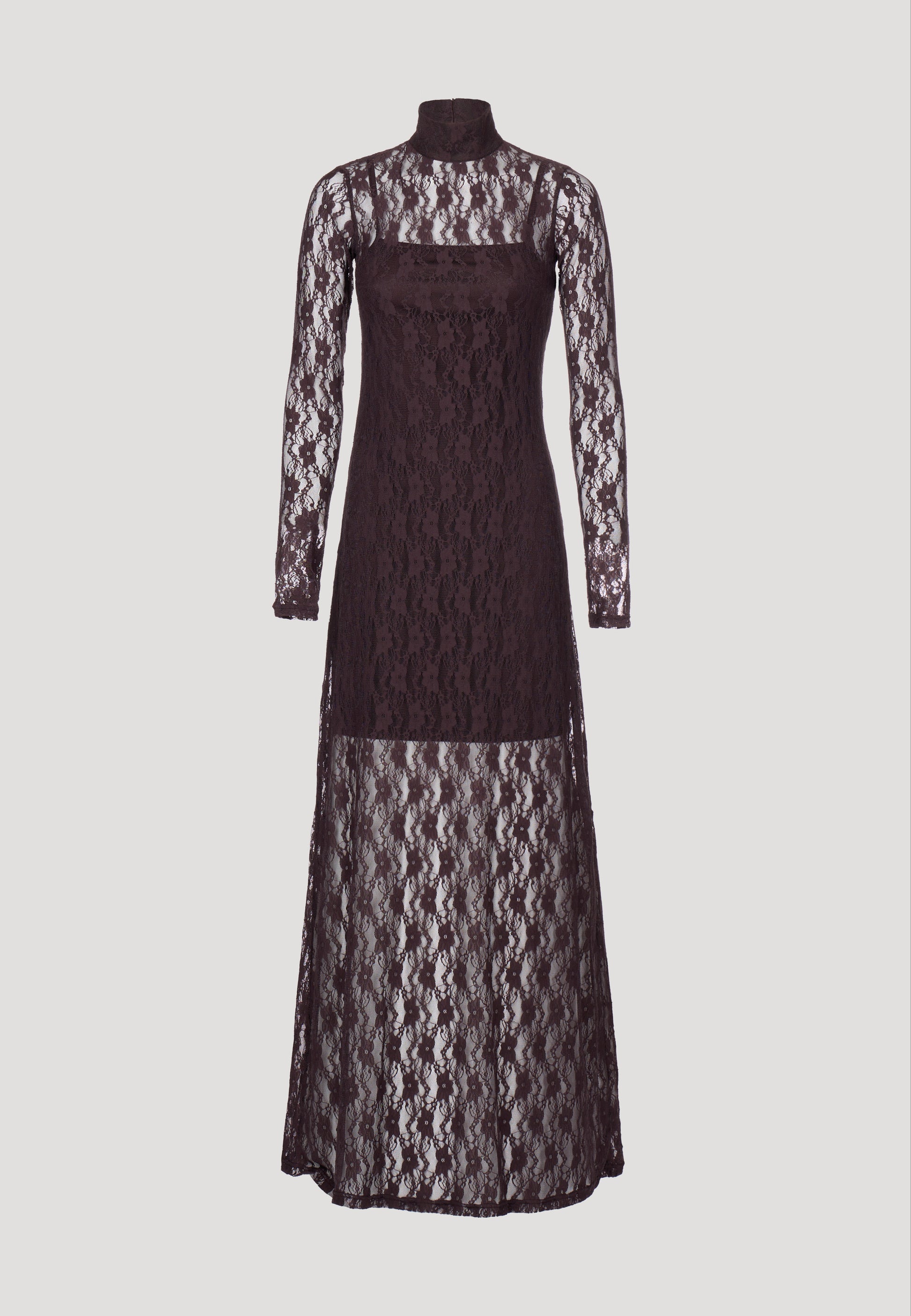 Long dress with high neck and long sleeves in stretchy lace fabric. Detachable lining dress.