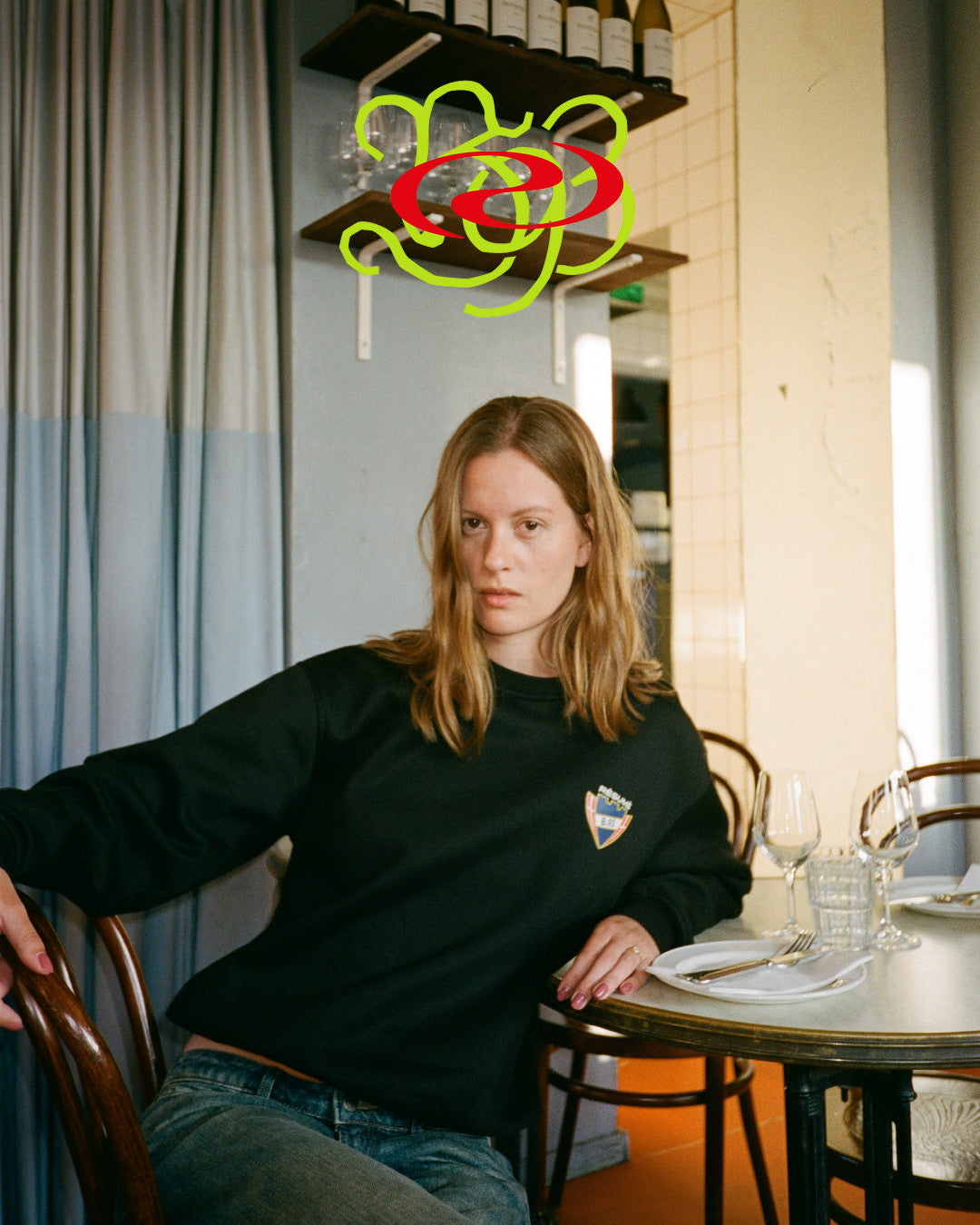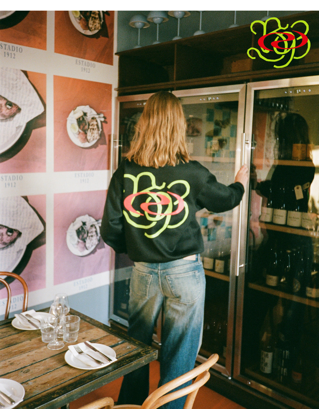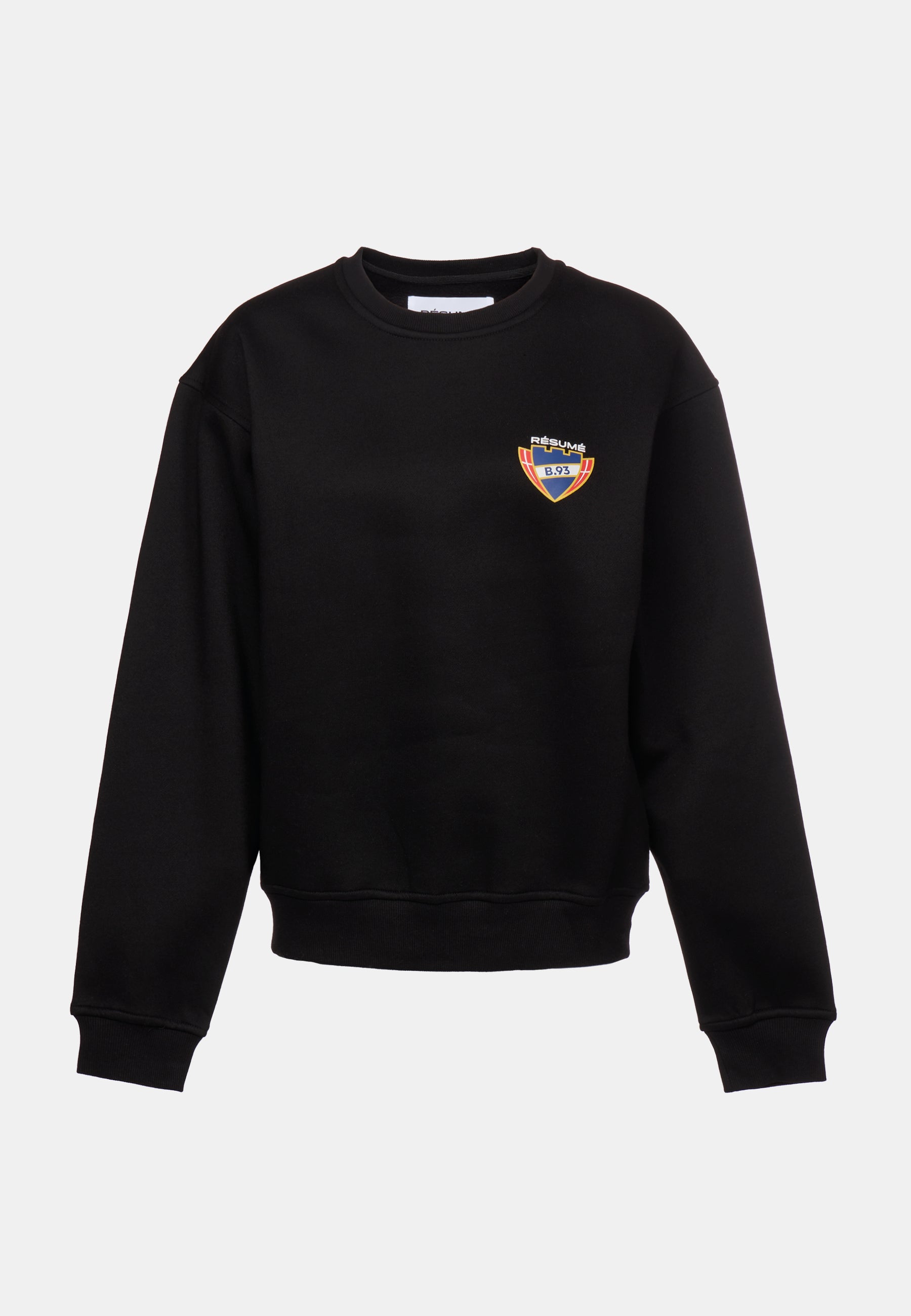 Casual crew neck sweat with B93 emblem print on front chest and Resume© x B93 collab print on back.